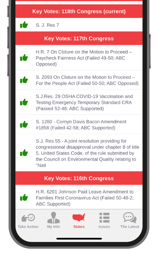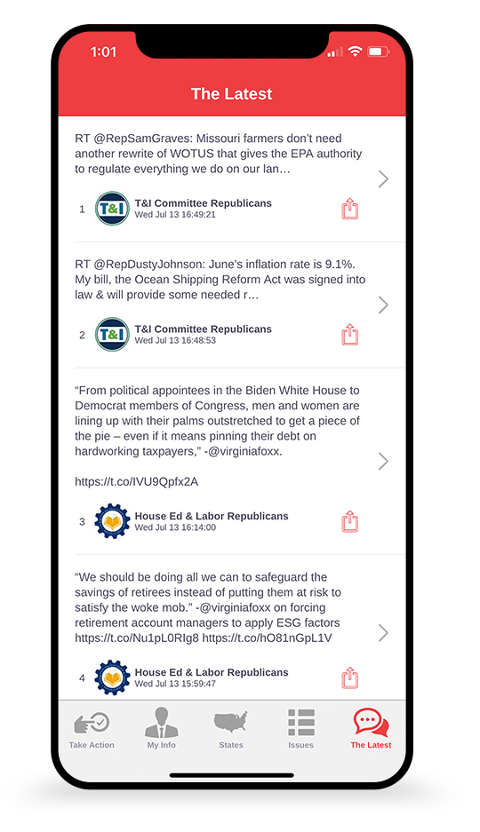 Instant Notifications Grassroots and legislative alerts are sent directly to your device.